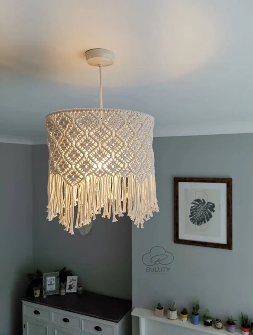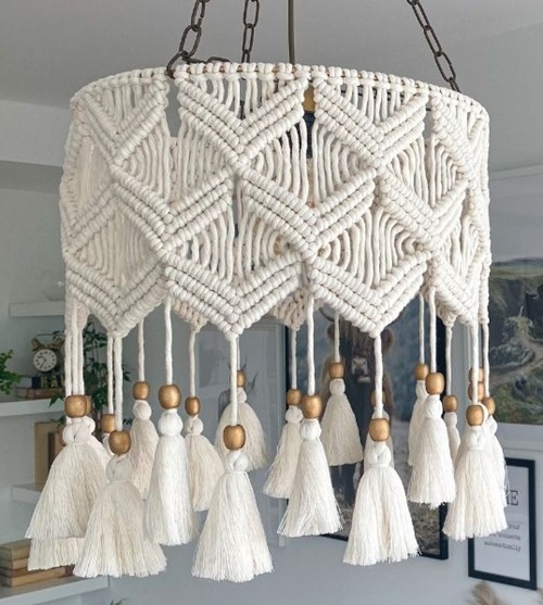 Looking for a handcrafted macrame chandelier to boost the aesthetic appeal of your living room? Visit Sasha MACRAMESSAGE’s YouTube channel for this fantastic option. It features diamond shaped knots and crisscross lines.
