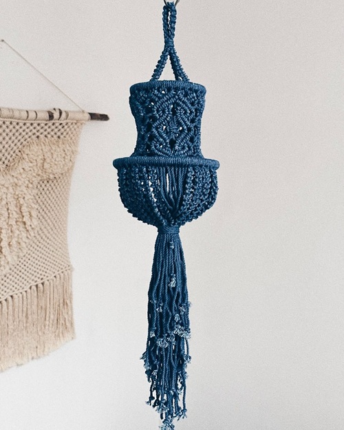 This macramé boho chandelier is created by the talented Sasha MACRAMESSAGE. It’s a perfect add-on for a beach-themed home decor, thanks to the dark blue hue.