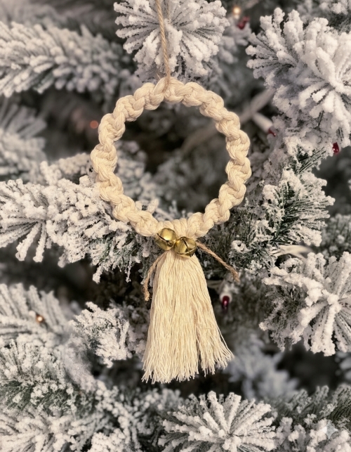 The macrame mini wreath by Soulful Notions is a lovely and classic piece to add to your holiday décor. It’s perfect for hanging on your Christmas tree or to use as a gift topper.