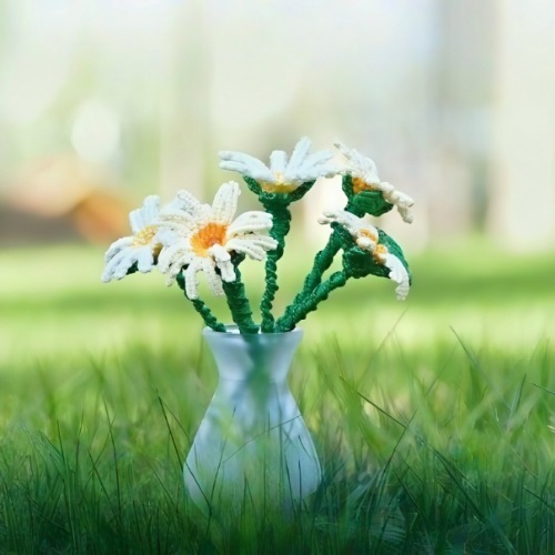 Want to bring the beauty of daisies indoors but don’t want to spend time on their maintenance? Check out this bunch of knotted daisies by Macrame School. You can keep them on shelves, desks, or side tables.