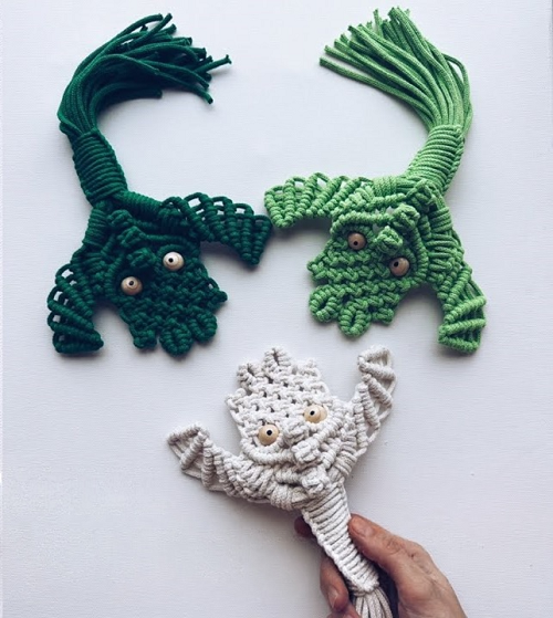 This collection of macrame dragon are a unique way to show off your skills by turning simple cotton cord into this beautiful creature. Check out!