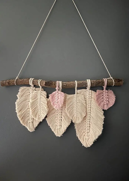 Try the gorgeous dowel feather hanging by Making Manzanita. Even if you have little to no macrame experience, you can follow the steps. It’s enough to elevate your home decor instantly.