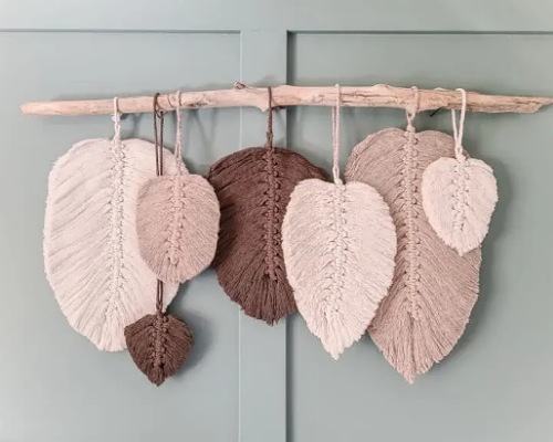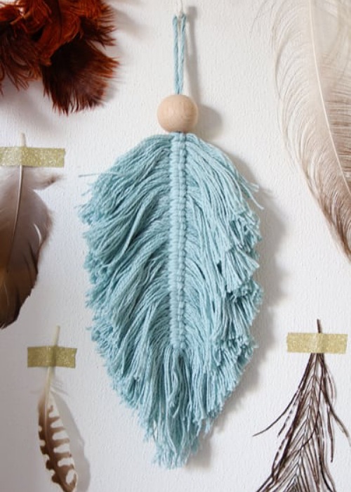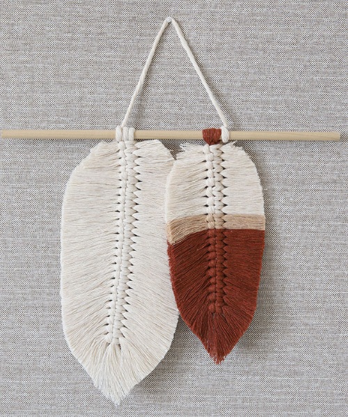 Try these large macrame feather wall decor pieces from Honestlywtf. To make this, you will need 5mm single-twist cotton string, fabric stiffener, sharp fabric shears, and a cat brush.