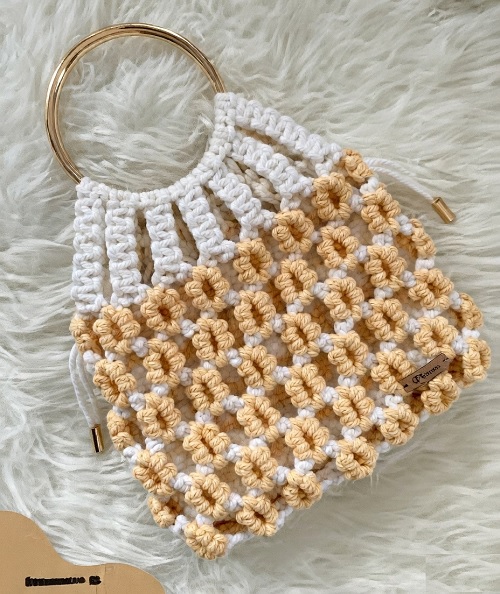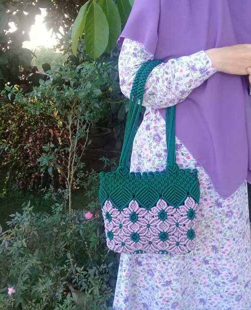 Nana Ukhana is behind this DIY macrame flower net bag. The bag is designed with a lightweight net structure combined with a simple floral design, which gives it a unique look.