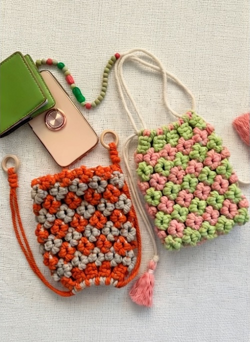 Knot Just Jun & Artniju Studio has designed a mini bucket bag. All you need to use is a 3mm twisted/braided cotton macrame cord in different colors to make it more appealing.