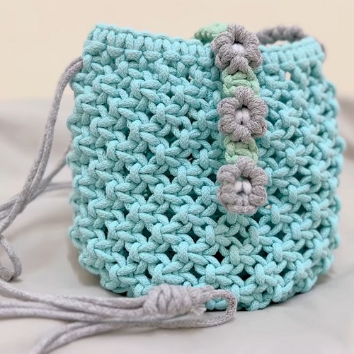 7. Mini Floral Macrame Bucket Bag