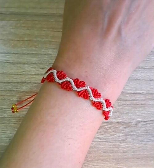 3. Wavy Macrame Bracelet with Tiny Hearts