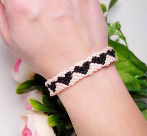 This micro macrame bracelet will definitely catch everyone’s attention, all thanks to the quirky heart design in the center. It has two intertwined hearts, finished with sliding clasps. Micraft Studio is behind this paid pattern.