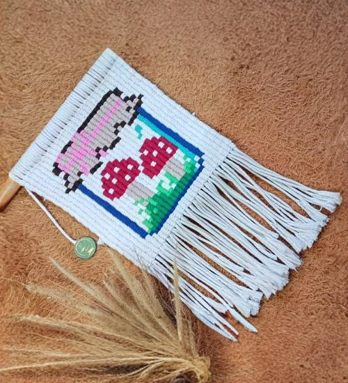Another eye-grabbing macrame wall hanging from Simply Inspired. The long, flowy fringes and the mushroom design in the middle enhance the look. You can hang them in your living space for bohemian flair.