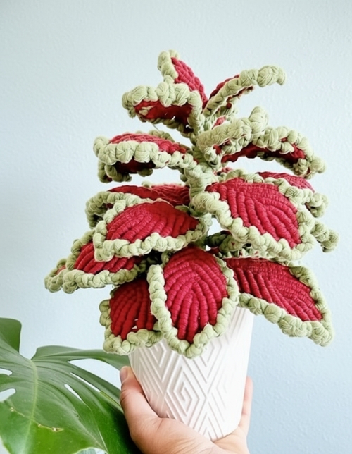 Can you believe this gorgeous coleus is made from cords and knots? Yes, it is! This is an outstanding creation by the talented Kasha Cantilo. Feel free to change the colors as needed.