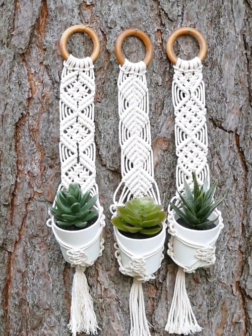 Macrame School has shown three different bohemian succulent hangers in this visual tutorial. You can hang them in the entryway to welcome your guests with greenery.