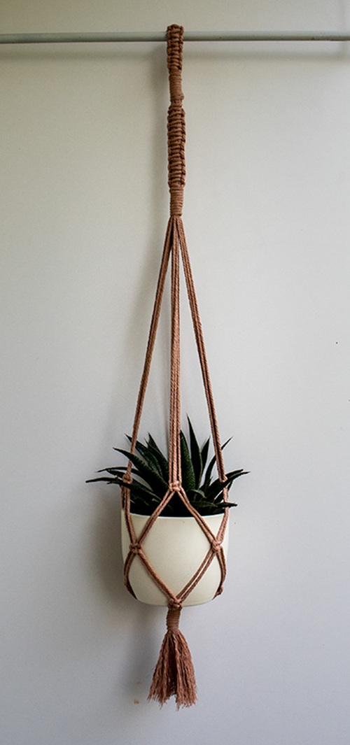 If you love minimalist stuff, this simple plant hanger by Crystal Martin is just the right option. It can be easily hung indoors, on the balcony, and on the porch.
