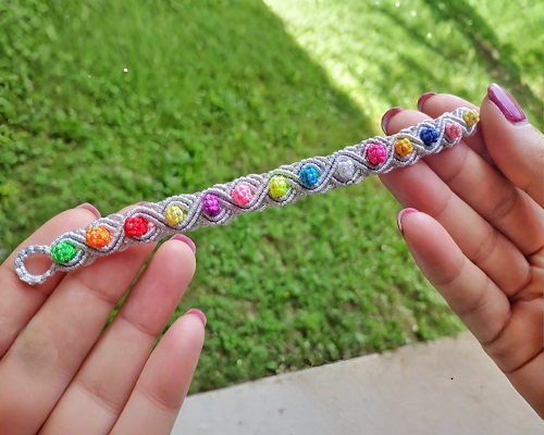 Do you know how to work with bobble knots? If the answer is yes, this macrame rainbow bracelet project is a piece of cake for you. Macrame Magic Knots shared all the necessary steps for crafting this wrist accessory.