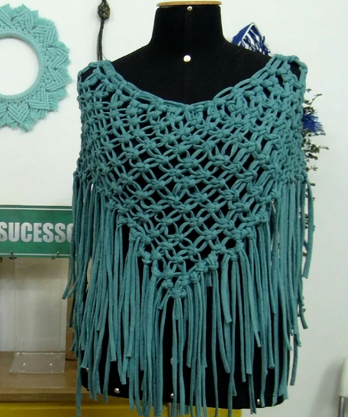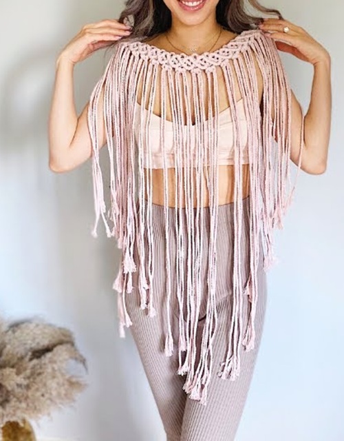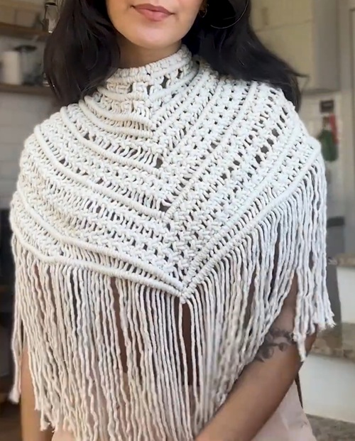 If crochet and knit summer ponchos are not your type, just go with these macrame versions instead. They are quite easy to make compared to those previously mentioned crafts. Plus, they have open, airy designs and a lightweight feel, so you can layer them over any outfit.