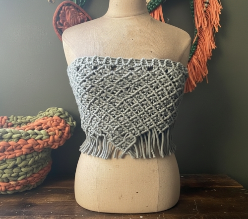 Try this stylish vintage macrame sweater from Etsy. You can adjust your size easily because of the simple instructions. You can download the free PDF pattern to make one for yourself.