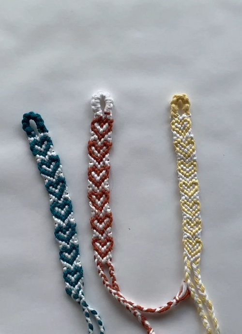 This collection of macrame Valentine’s Day Bracelet Free Patterns is highly customizable. You can mix and match reds, pinks, and whites to create the perfect gift item.