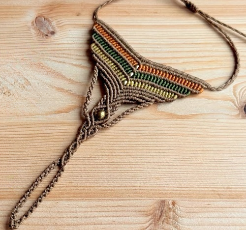 Want to give your outfit an earthy tribal look? This knotted bracelet pattern by Soony is just the right project for you. It is made using earthly shade threads like olive, ochre, amber, and more.