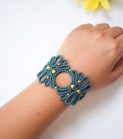 Here is another beautiful wrist accessory pattern from Tat’Anne that you can create using sliding knots in an hour. The bracelet will be perfect for everyday use and gifting purposes.