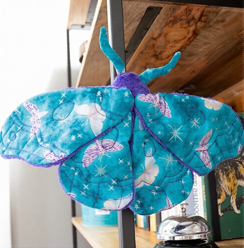 Have a look at the beautiful moth pattern by Blue Terracotta. It works well as a decorative piece on shelves. To make this, you need to first sew the body and upper wings, then lower wings, and then embroider the facial features.
