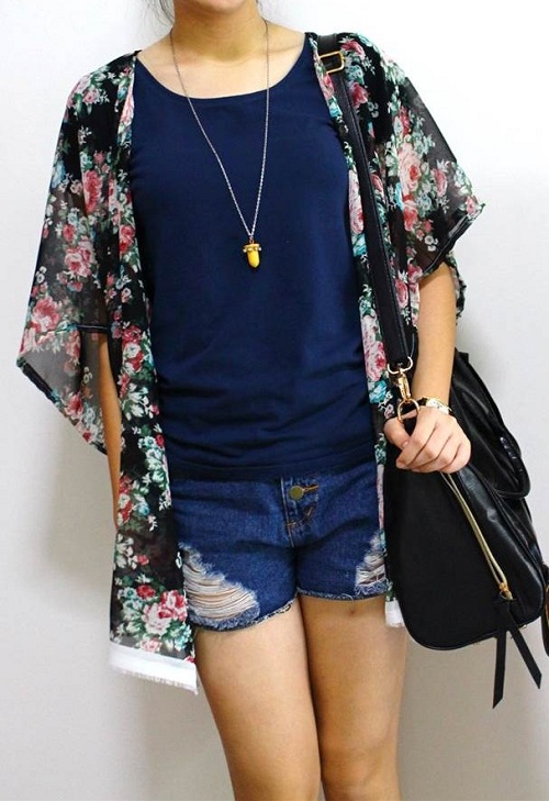 9. Floral Print Kimono-style Cardigan