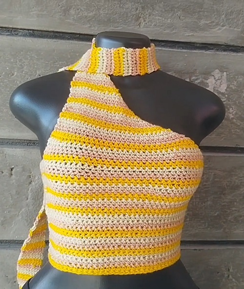Looking for an easy crochet accessory pattern? Then you can try this beautiful striped one-shoulder top by Dodo. It includes simple stitches; a beginner can definitely try this for their next project.