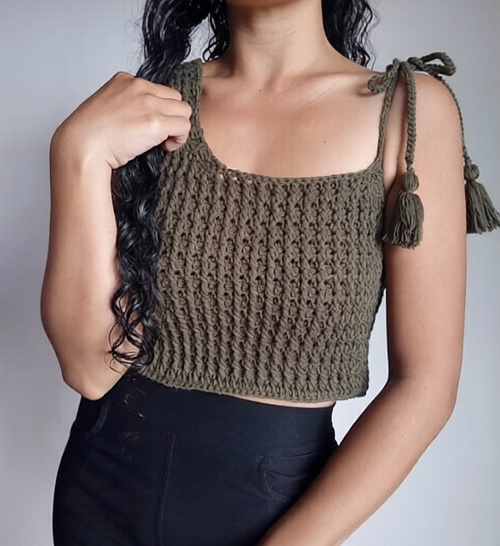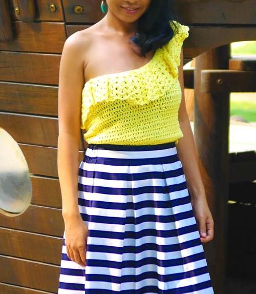 If it’s time to show off your fashionista side along with crocheting talent, these one-shoulder crop tops are just what you need. These are great for summer days because the soft yarn keeps you feeling cool and pretty.