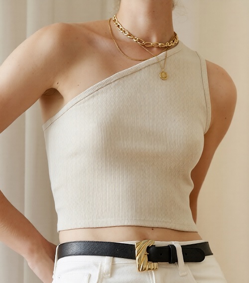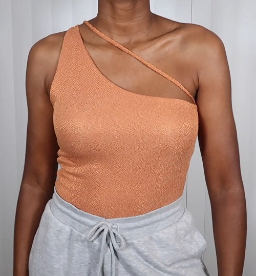 Want something that is quick and still looks trendy without any extra accessories? Then this one-shoulder top by Azhia Lassiter is a must-see.