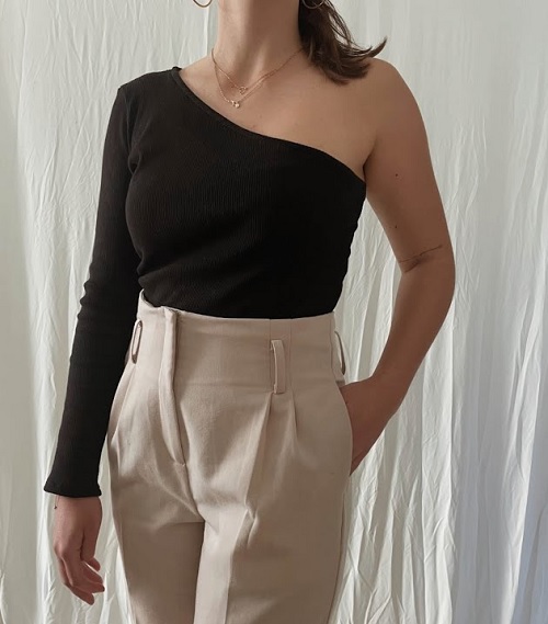 Have a look at this black one-shoulder top by Sewityourselfpattern. The design instantly gives you a chic and stylish look. You can pair it with trousers or pants for casual meetups.