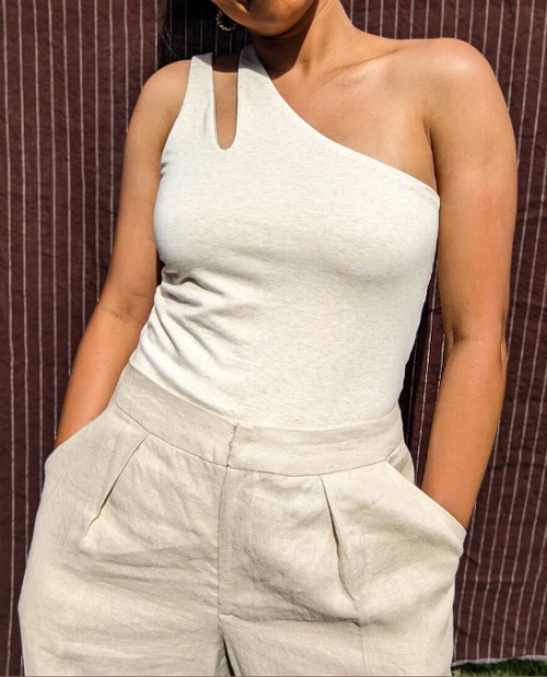 If you are searching for a piece that is stylish and modern, then check this one-shoulder top pattern by Daniela. The fitted finish with a slight relaxed vibe makes it perfect for every chic look.