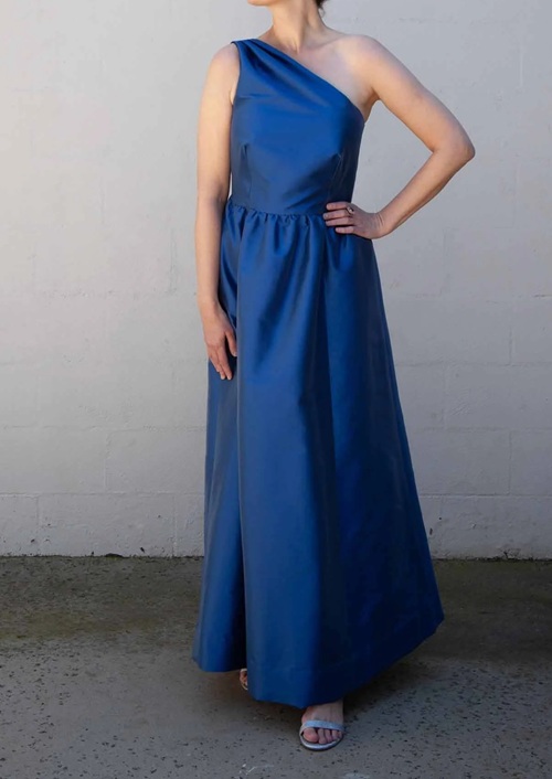 Have a look at this stylish sewing pattern from Mike Sibaja. It features a clean one-shoulder, asymmetrical neckline that is easy to sew and perfect for special occasions.