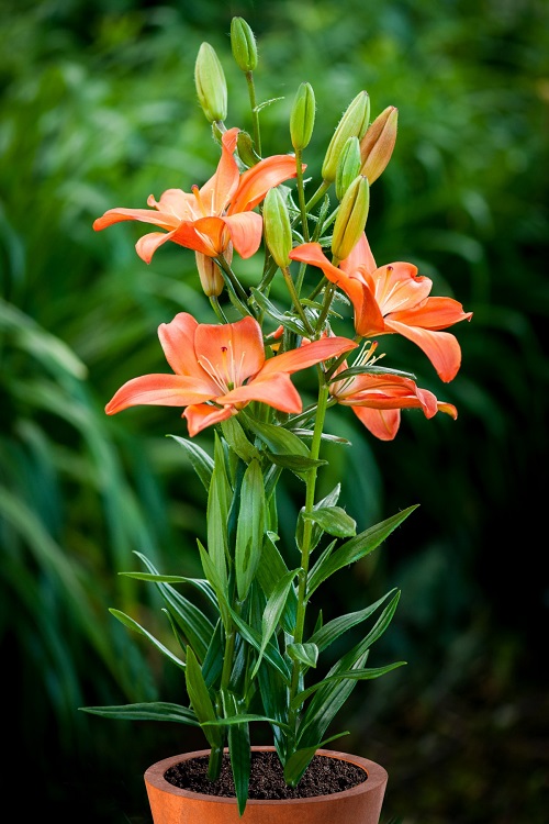 With gorgeous orange blooms, this lily species thrives in USDA Hardiness Zones 4-5. This striking flowering plant performs well in a sunny spot and a well-draining potting medium.