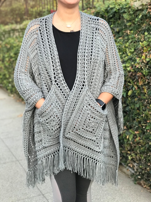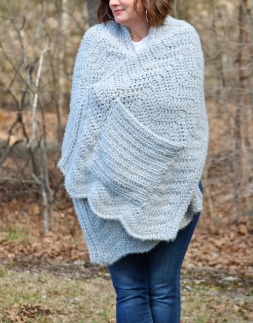 If you want a more cozy pocket shawl, this option by Kristi is the perfect fit. You can customize the color to match your vibes. Check out!