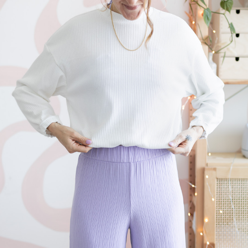 Want to sew something minimalistic and modern? Then have a look at this oversized sweater by Makeityoursthelabel. All you need is a stretchy fabric and an elastic band for the sleeve.