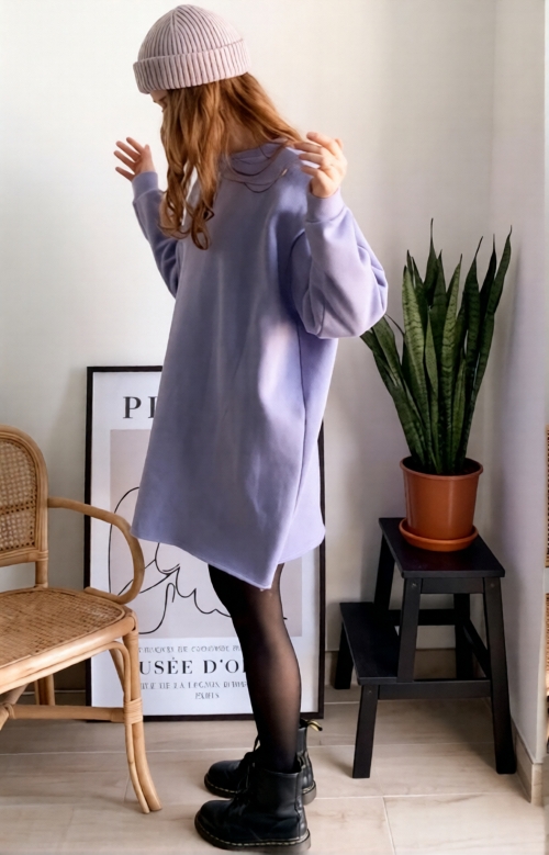 Have you ever heard about a sweater dress? If not, this video tutorial by Nähen lernen is your chance to sew one. It’s made from fabric, a sewing machine, an iron, fabric scissors, fabric pins, and fleece.