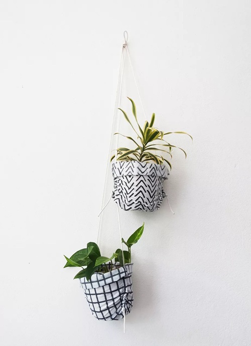 Amaryllis is behind these lovely wall-hanging potted plant holders. You only need a rectangular piece of fabric measuring 24 x 12 inches, rope, thread, and a sewing machine.