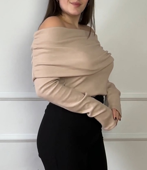The long-sleeved shoulder top by Pattern Couture is a simple and stylish design. It features an off-the-shoulder neckline with a comfortable-to-wear fit and long sleeves to protect from tanning.