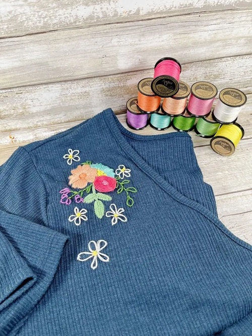 This floral embroidered T-shirt by Creatively Beth is a simple and easy way to decorate a plain tee. It’s perfect for everyday wear and also makes a thoughtful handmade gift.