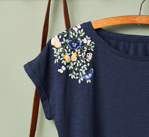 This floral embroidered T-shirt by Anna Alicia is a lovely way to customize any plain tee. Not to mention, it will be a great gifting option. Right!