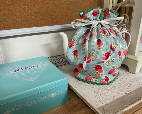 Check out this patchwork tea cozy from Thesewingdirectory. It is super stylish and functional as its multi-layered construction provides the perfect weight and structure to sit securely over your teapot without slipping.
