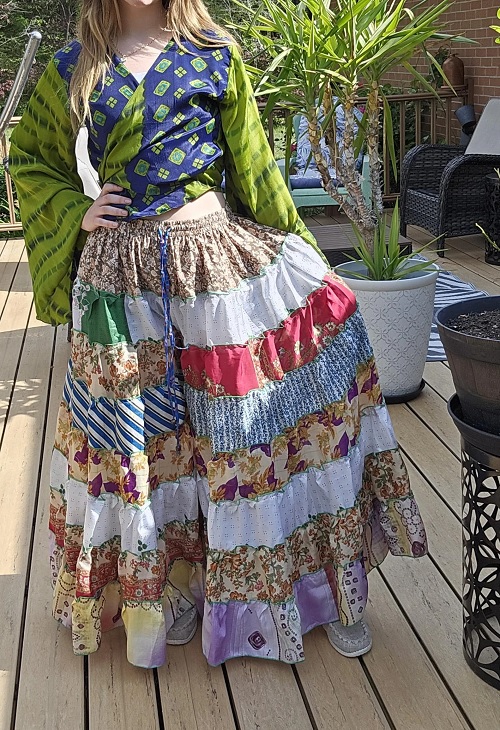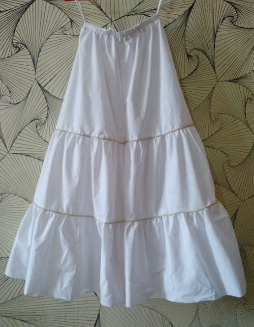 Sewing Edges stitched this bottomwear with a white fabric, scissors, and a sewing machine. Its wide-leg design and frilly edges are the talking point.