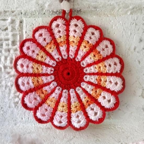 Want to add the beauty of daisies to your kitchen? Then try crafting this potholder by Maggie. All you need is a 7 mm crochet hook and size 10 thread for this project.