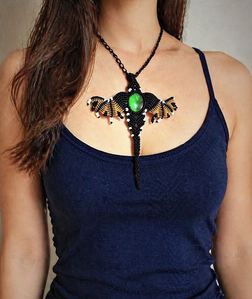 All the GOT fans, be ready because MACRAME TITA has an amazing project for you all. She created a Rhaegal dragon-inspired pendant out of macrame cords. Yes, you read it right, and it’s looking so awesome.