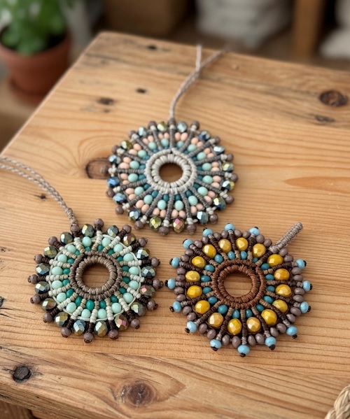 If you’re looking for handcrafted jewelry that can be used in multiple ways, do check out Soony’s video. She knotted bohemian sunburst pendants that can be used as mirror charms and wall hangers.