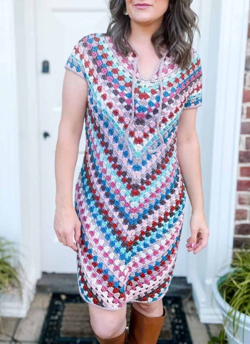 Learn how to make this amazing dress with Hannah. A perfect summer outfit that is available in different sizes from XS to 5XL. All you need to work on are granny stitches to get this unique texture.