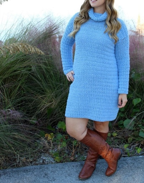 A perfect dress on winter from Michelle. It is best for every sizes and keep you warm during this cold weather. You can purchase this pattern to make one for yourself.
