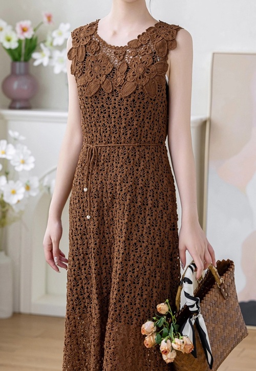 You can try this stunning dress from Circulo. A perfect pattern for intermediate crocheters. All you need to ch, sl st, sc, hdc, dc, 2Xdc, and more. It can be made on various sizes from S to 3XL.
